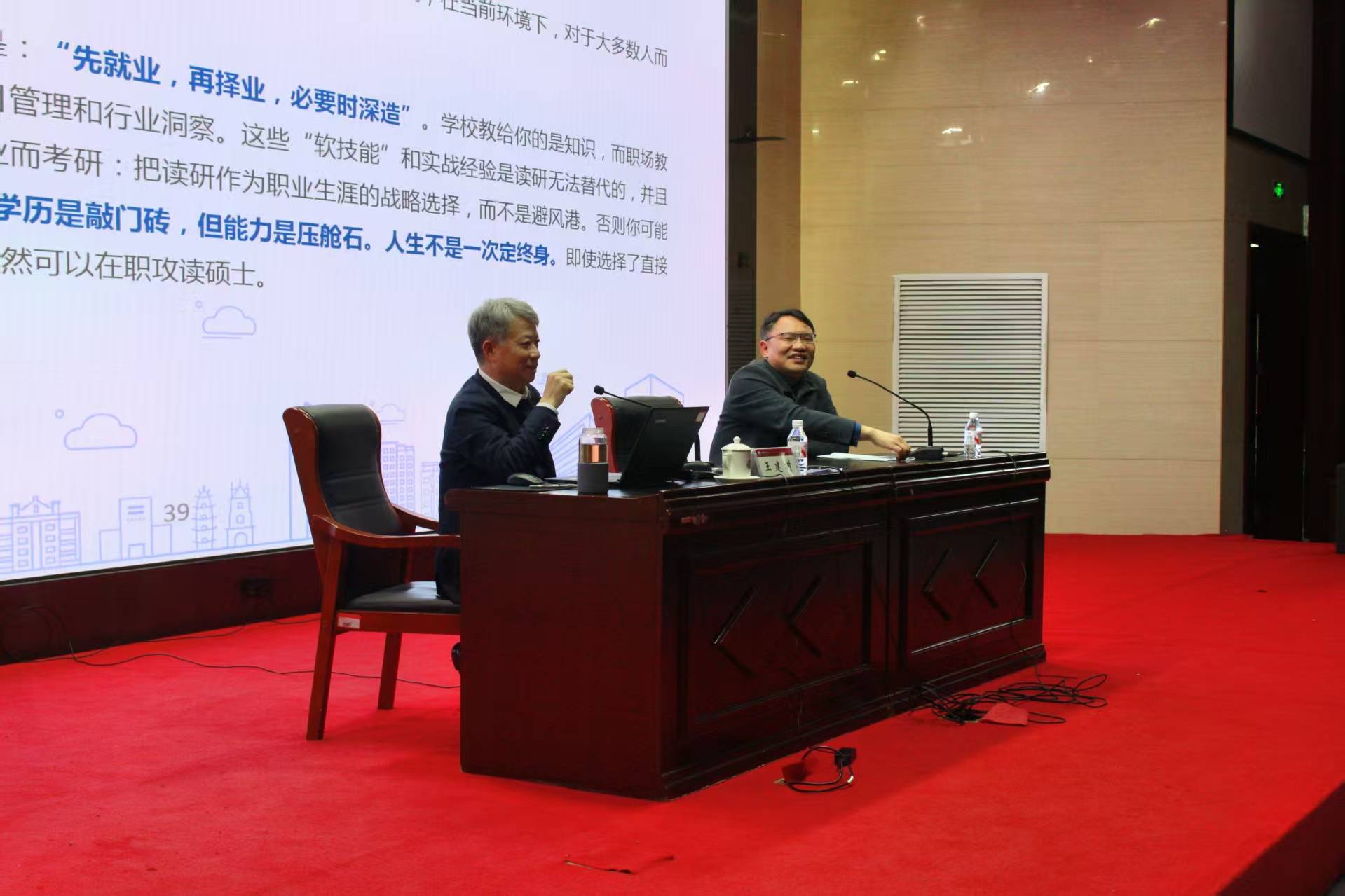 国际经济与贸易学院院长王洪庆和学生代表郑苏凡分别从专业发展视角和新生职业规划与成长认知方面分享交流心得体会。